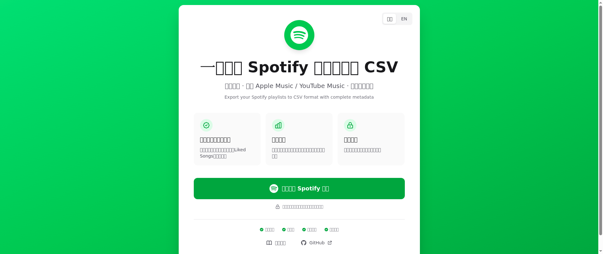| 2025-11-13 12:36 | 2025-11-09 01:47 | https://spotify-export.xyz | ![]() |